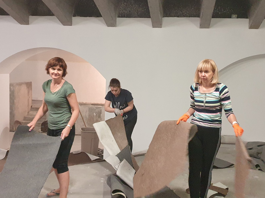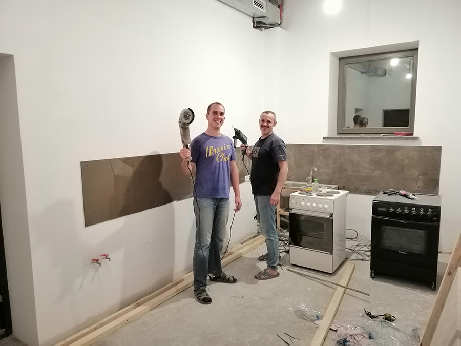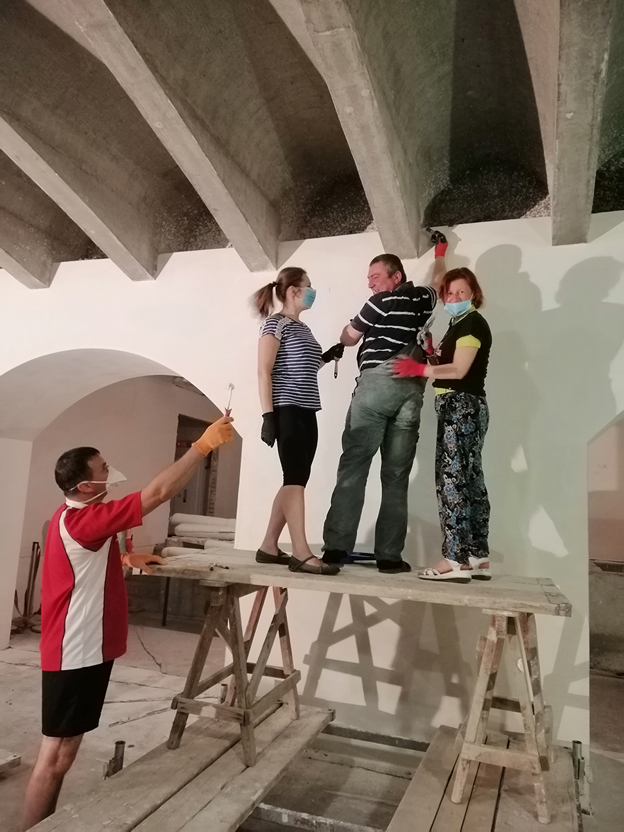 Протягом останніх чотирьох місяців наша парафіальна спільнота «Виноградник» зробила ремонт та відновила частину цокольних приміщень нашого храму. Зокрема був виконаний ремонт центральної зали, коридору, кухні, робочої кімнати для організації Sobor.Help, дитячої кімнати, а також кімнати для музичного колективу «Гроно». Члени спільноти пошпаклювали та пофарбували стіни, застелили ковролінове покриття, додали освітлення. Також вони власноруч виготовили стелажі та меблі в приміщення кухні та кімнат, окрім цього почистили та відновили приблизно 100 стільців.